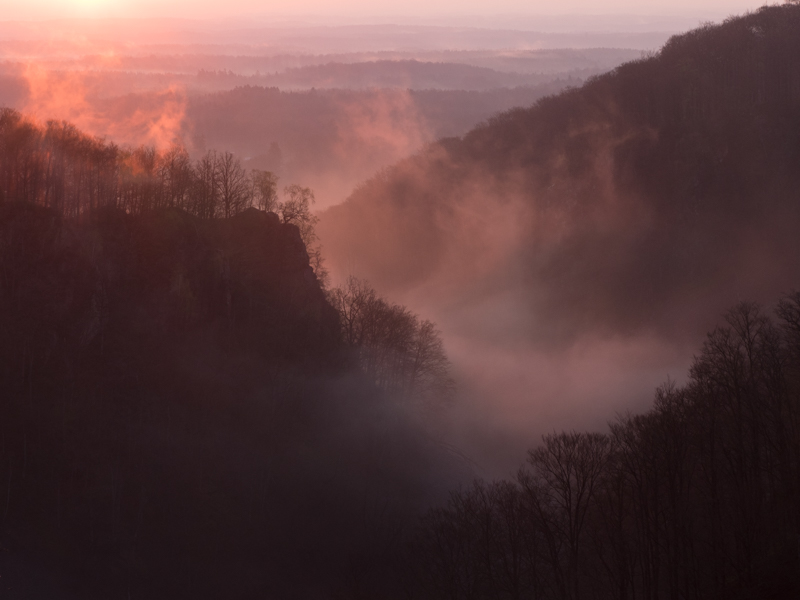 väckning 3:50. fixa frukost & kaffe och iväg mot kopparhatten för att möta solen som skulle stiga i bortre ändan av skäralidsravinen. och något av ett spektakel blev. bilderna kan man inte ens riktigt lägga upp på bloggen eftersom ingen kan tro att de är äkta på grund av färgerna. så pass overkliga var de. och sedan dimman som dansade mellan och upp och ned för ravinens väggar. coolt.